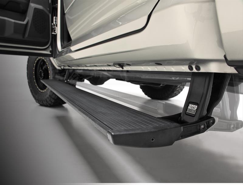 | description | AMP Research PowerSteps are full length automatic electric-powered running boards that instantly extend when you open your door, and then hide themselves safely out of sight when the doors close for improved ground clearance, aerodynamics, and appearance. And their attractive design and legendary reliable, all-weather performance sets a new industry standard. Features include: * High-strength, diecast aluminum-alloy linkage arms, anodized and PTFE coated to resist corrosion * Precision, zero-maintenance stainless-steel pivot pins * Extruded aluminum steps with a textured powdercoated finish for maximum grip and durability * Weatherproof, OEM-quality electric motors and wiring harness with sealed weathertight connectors * AMP-designed electronic controller employs pressure-sensitive, pinch-proof safety technology * Integrated LED light system (standard) * 600 lbs. load capacity (each side) |