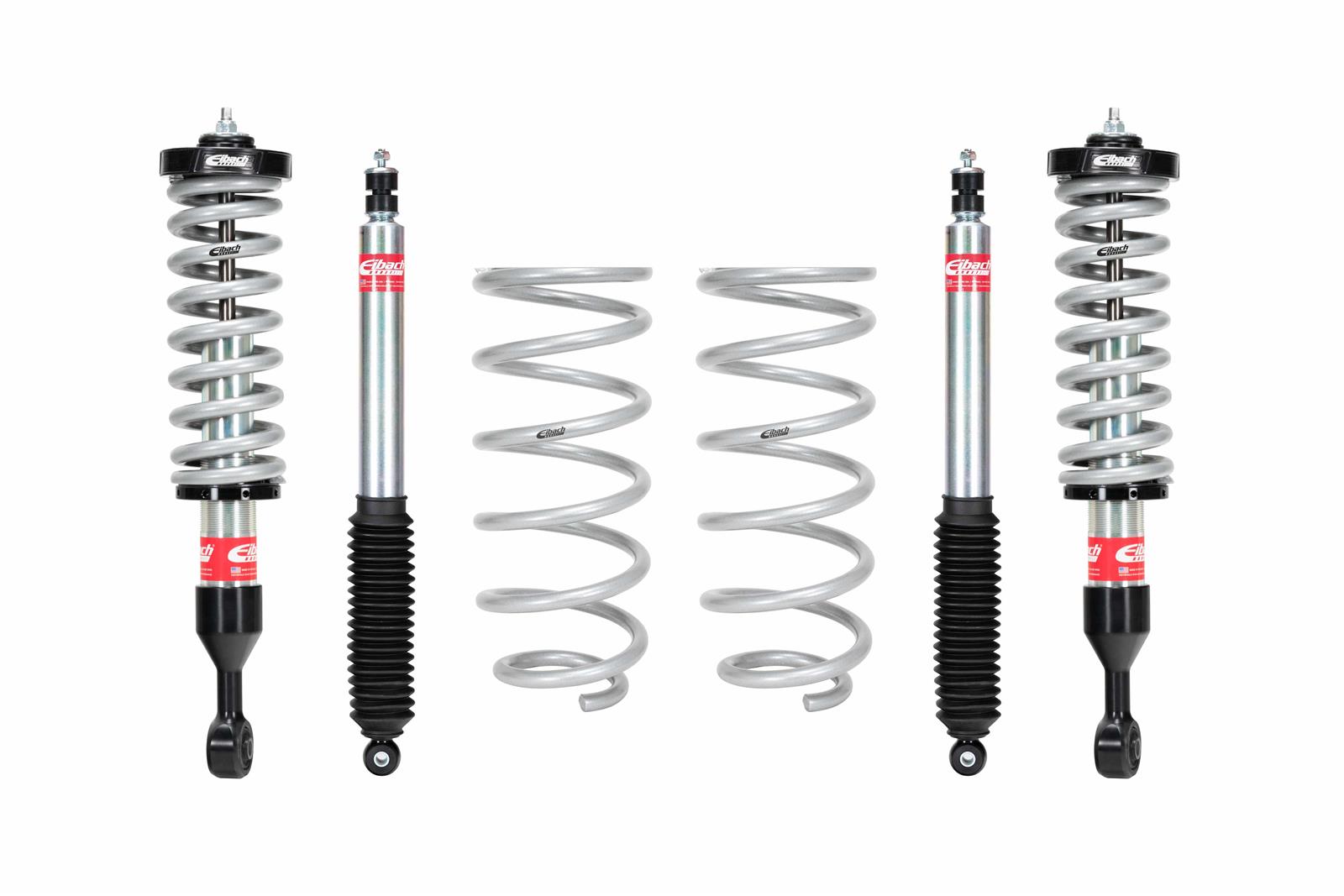 | description | Eibach offers Pro-Truck Stage 2 coilovers for a variety of applications. Stage 2 systems for Chevy vehicles feature Pro-Truck coilover 2.0s and Pro-Truck Reservoir Sport shocks. The height-adjustable front coilovers and external reservoir rear shocks deliver increased off-road performance. Stage 2 systems for Toyota vehicles feature Pro-Truck coilover 2.0s and rear Sport Shocks and Pro-Lift-kit springs. The front adjustable threaded spring perch accommodates increased loads and maximum clearance. ERO Off-Road Race Spring equipped and compatible. Additional details: * Anodized 6061-T6 billet aluminum coilover mounts 46mm piston monotube design with nitrogen-filled variable force valving * Individually dyno tested for matched performance and reliability. Heavy-duty bushing system also cycle-tested * Engineered, manufactured and tested domestically by Eibach |